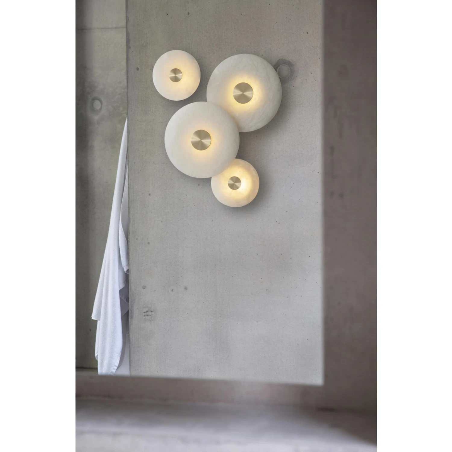 Concept: The Bide the wall light from Bert Frank is a beautiful and elegant wall lamp, made of the finest alabaster. The alabaster material has a natural softness that helps to give the light from the lightbulb a warm and pleasant glow. The Bide the wall light has a beautiful brass or nickel detail in the middle of the shade , which gives the lamp an exclusive and elegant expression. The wall light can be used in everything from the living room to the bedroom, and with an IP rating of IP65, the lamp can even be placed in the bathroom. Bites are available in two different sizes.
