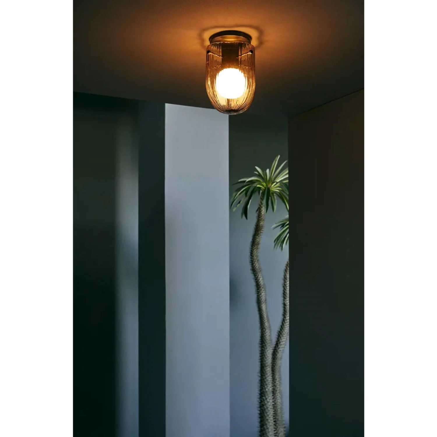 Concept: The Seine lamp collection, designed by Space Copenhagen for GUBI, draws its inspiration from the reflection of light in moving water. The lamp’s patterned mouth-blown glass captures this fascinating effect and draws on the power of glass to soften and layer the light. An almost dreamlike atmosphere is created that softens your room and at the same time lights up the entire room. The beautiful burnished brass stands in elegant contrast with the mouth-blown glass and adds finesse and elegance. The Seine lamp is available with a smoked shade that slightly tones the light but is still transparent, so you can see the beautiful inner structure of the glass. The lamp is also available with a coral colored shade with a sandblasted inside that gives a hazy effect and a more blurred light effect. The Seine series consists of a ceiling light, a pendant and a table lamp, so it is possible to place a Seine lamp anywhere in the home.