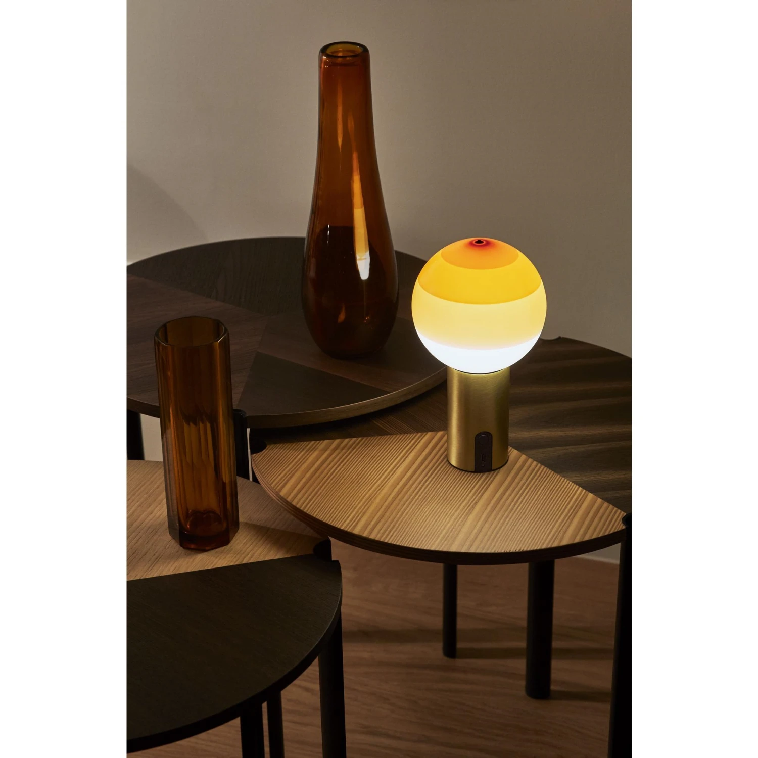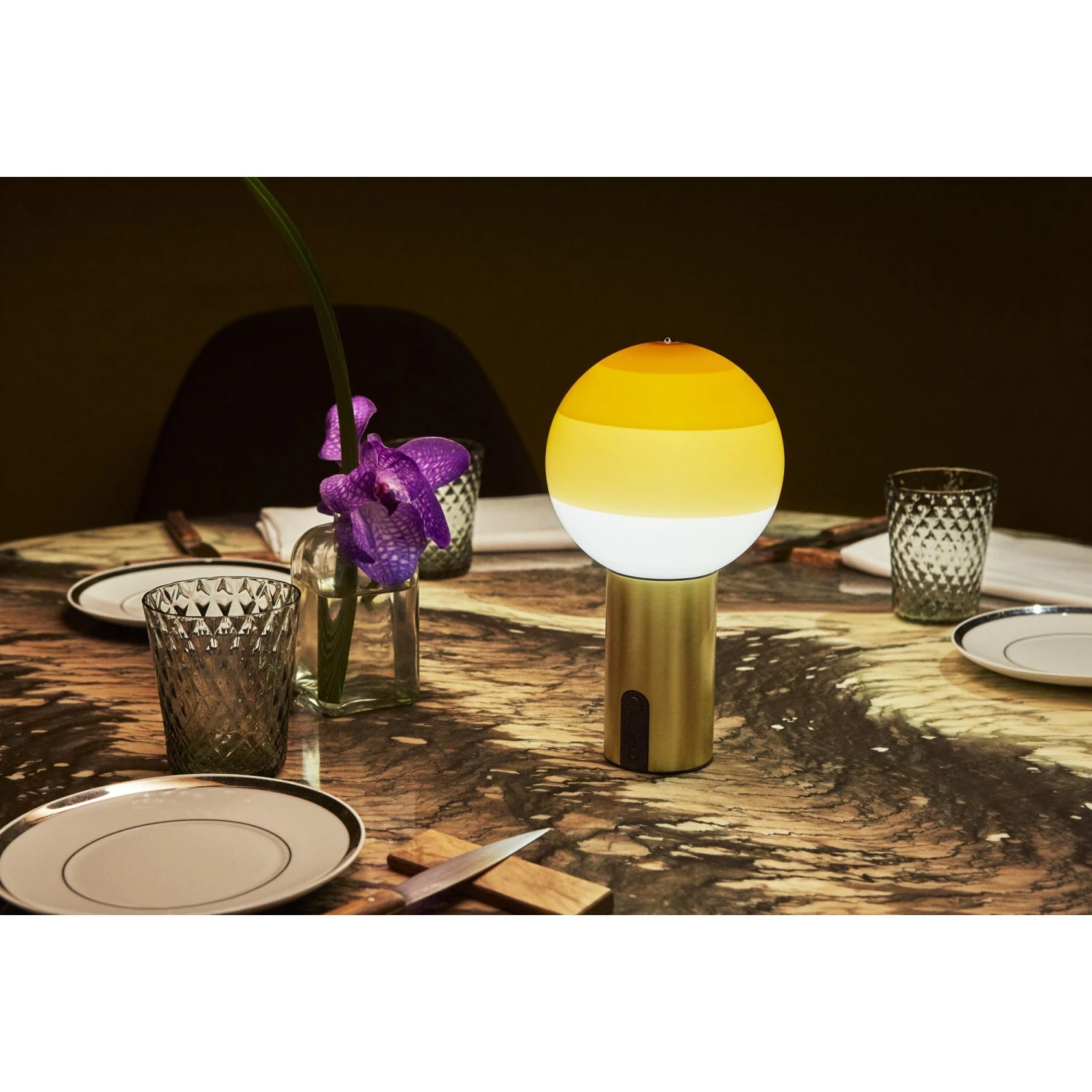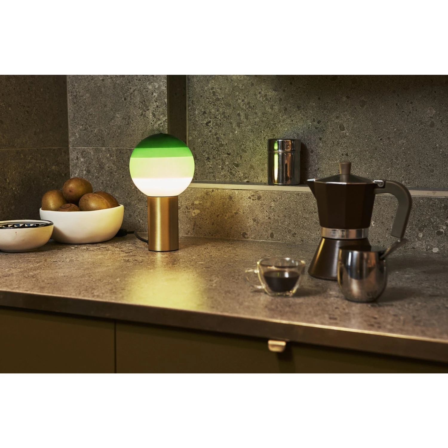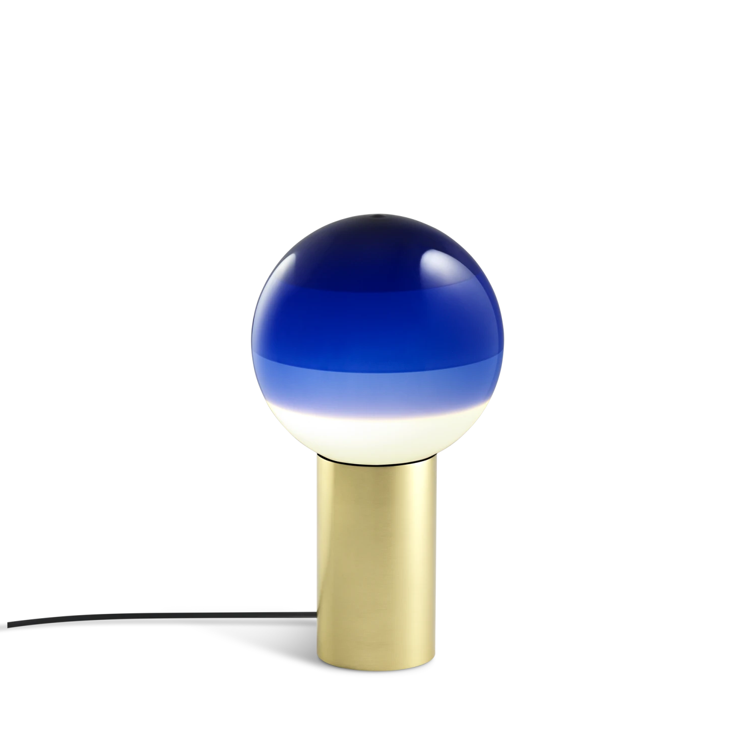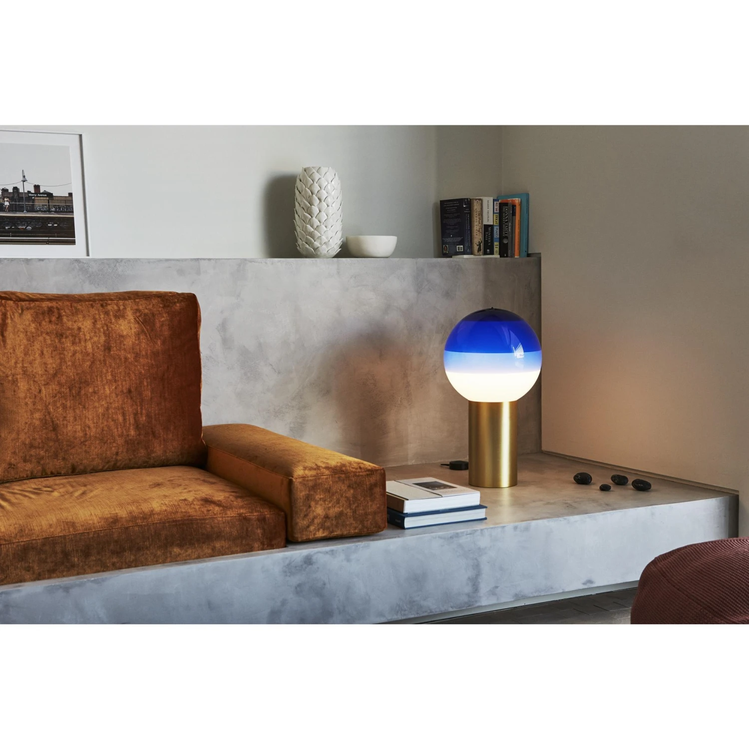 Marset Dipping Light is a design by Jordi Canudas. The designer has always enjoyed challenging light itself and is always ready to learn something new from the thing that essentially created life itself. Under these conditions, Dipping Light was created – as one of his experiments where he dipped the lamps in paint several times. The table lamp stands on a brass base that complements the unique glass shade. Dipping Light is available in several colours: blue, yellow, green, white, pink, black and in a big and a small version.