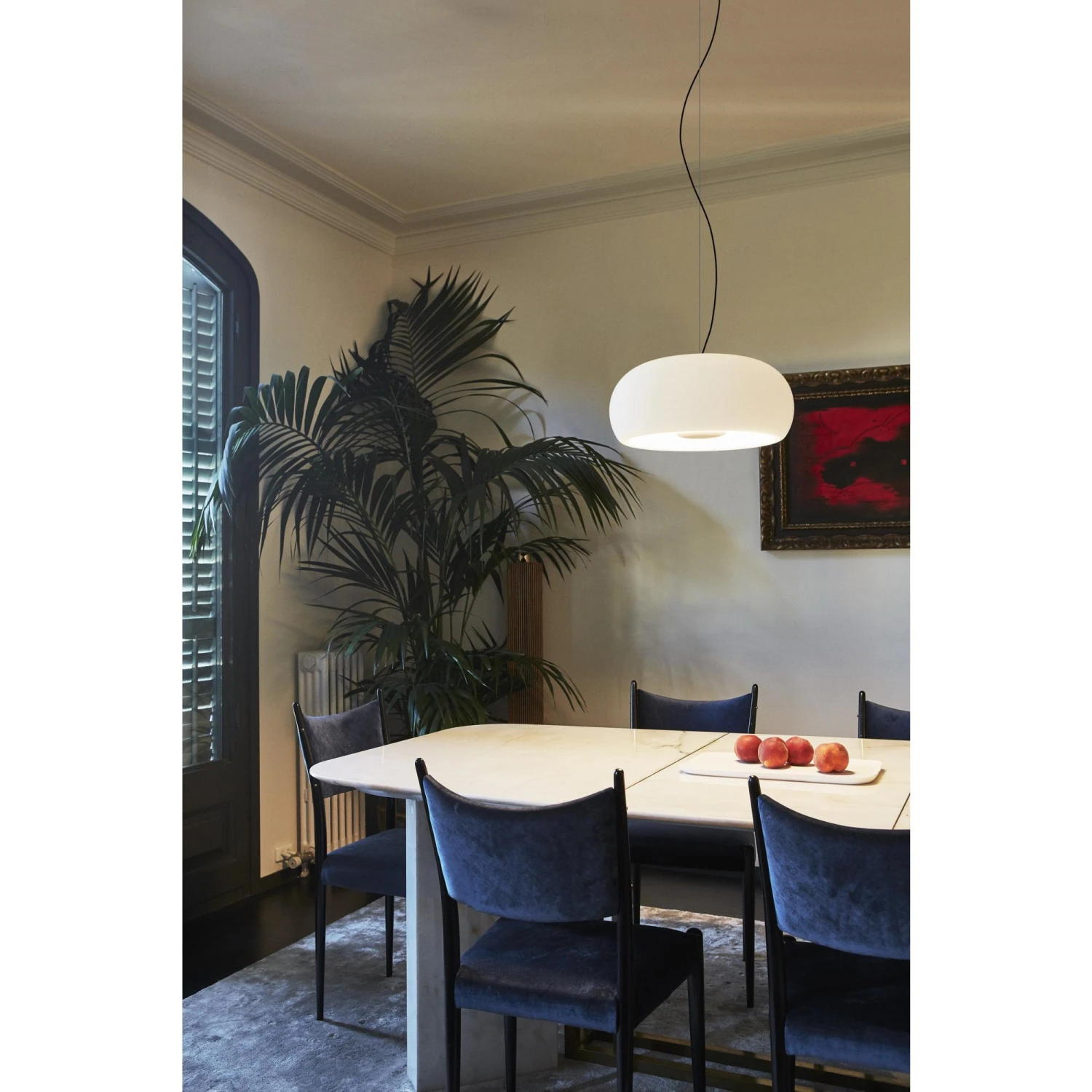 Marset Vetra is a lamp designed by Joan Gaspar. It offers a lot more than what meets the eye: Gaspar has placed the light bulb outwith the lamp. This means that there is a lot more light coming from the lamp as it gives a direct downwards light and a diffuse outwards light as it filters through the lamp shade. As an echo, the light spreads into the room and makes the lamp look alive. The lamp is perfect for all surroundings and is available as a pendant, table lamp and floor lamp. Available in white and black/white.