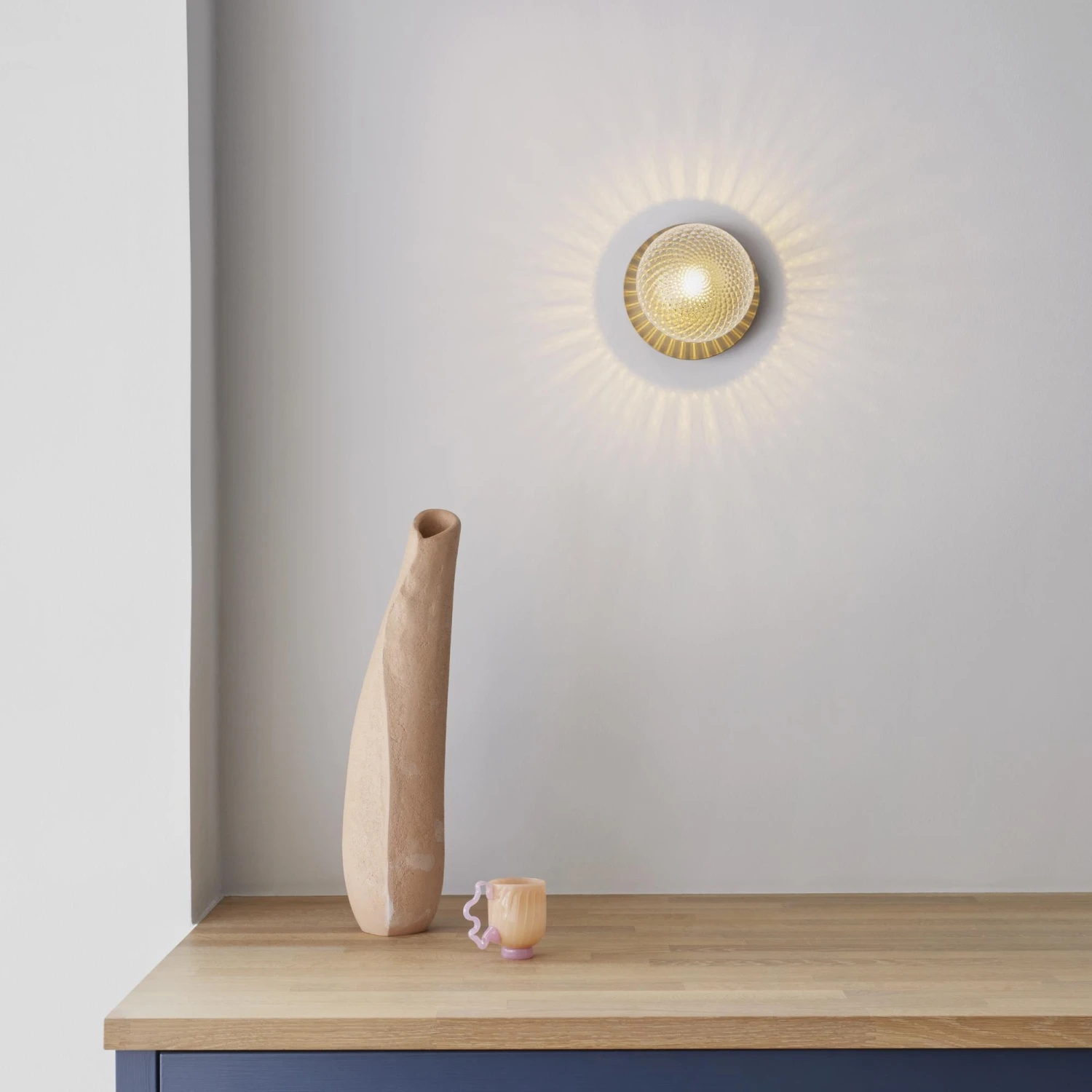 Concept: Nuura Liila 1 Wall Lamp Optic is an extremely elegant wall lamp that gives off a calm and pleasant light. Nuura Liila is made of mouth-blown glass and has a back plate in metal. The glass and metal contrast beautifully and gives the lamp a clean and high-end look. The glass shade gives great diffusion of light, which gives a pleasant feel to the room in which the lamp hangs. The Nuura Liila 1 wall lamp will look amazing in the hallway or powder room. In addition to this, the lamp is great for low ceiling spaces, like a hallway or staircase, where the lamp will give a nice useable light, without taking up too much space. The Liila lamp series comes in the following versions: Liila 1 Wall Lamp Opal, Liila 1 Wall Lamp Optic, and Liila 12 Wall/Ceiling Lamp.