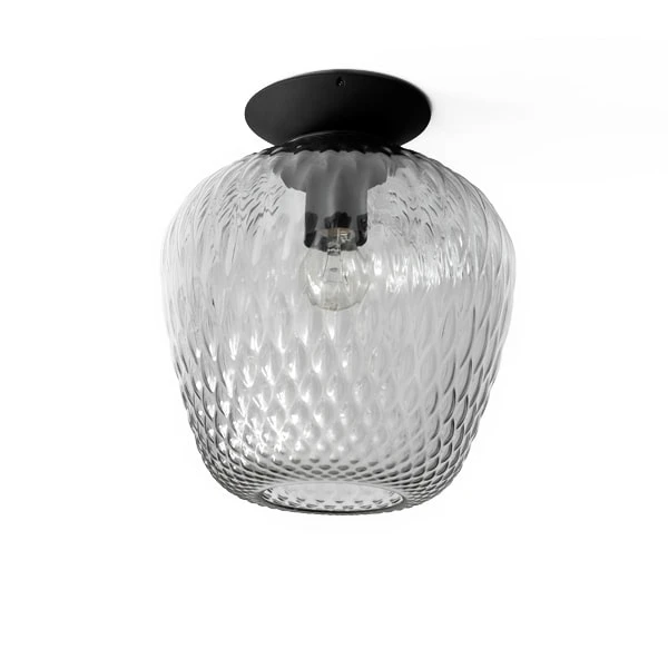 &tradition Blown SW5 Ceiling lamp is a mouth blown ceiling lamp with a quilted pattern, available in two versions: a translucent variant with a silver lustre and a white sandblasted one. The ceiling lamp has a powder coated cast-iron suspension. Berries, especially raspberries, has provided the inspiration for the texture of the lamp. The two versions each add something different to your interior: the sandblasted one gives off a subtle, sophisticated glow, whereas the translucent one transforms the room into a world of intricate shapes and patterns.